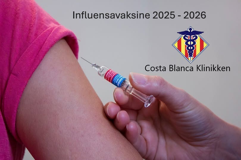 Influensavaksine Vi har nå sesongens influensavaksine tilgjengelig! Kvalitetssikret helseinformasjon Facebook Instagram Twitter costablancaklinikken.com 2004-2026
